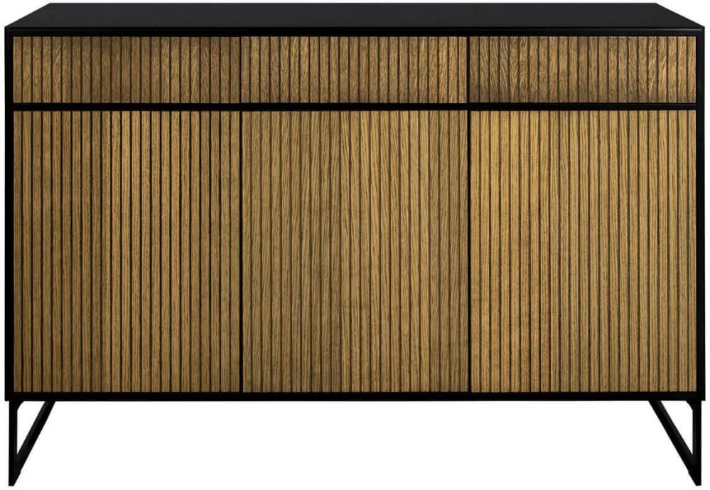 Line finns nu även i utförandet Burned Walnut - fronter i valnötsbetsad ekfanér med sidor i svart eller vit. Överdelen ackompanjeras med benställning eller sockel.