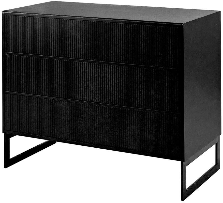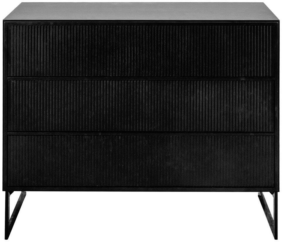 Byrån Line från Englesson finns i två utföranden, en med tre breda lådor och en något högre med samma grund plus tre mindre lådor på en rad ovanför. Vilken passar bäst i ditt hem? Båda ger god förvaring innaför de rillade lådfronterna. Alla delar ur möbelserien Line är tillverkade av tålig och rejäl MDF som målats med halvmatt vit eller svart färg, till möblerna väljs svartlackat eller förkromat järnunderrede.