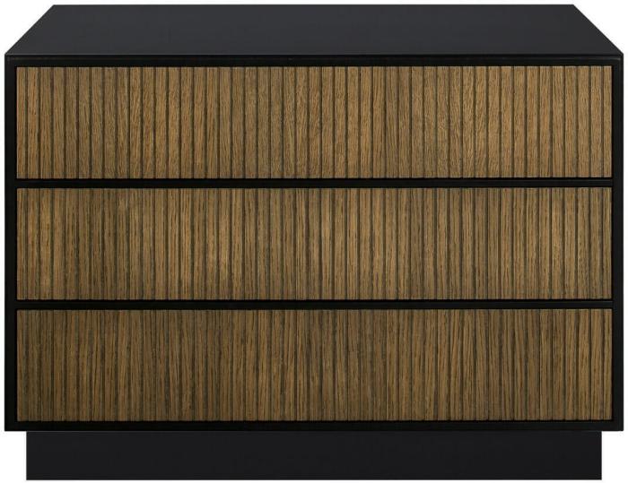 Line finns nu även i utförandet Burned Walnut - fronter i valnötsbetsad ekfanér med sidor i svart eller vit. Överdelen ackompanjeras med benställning eller sockel.