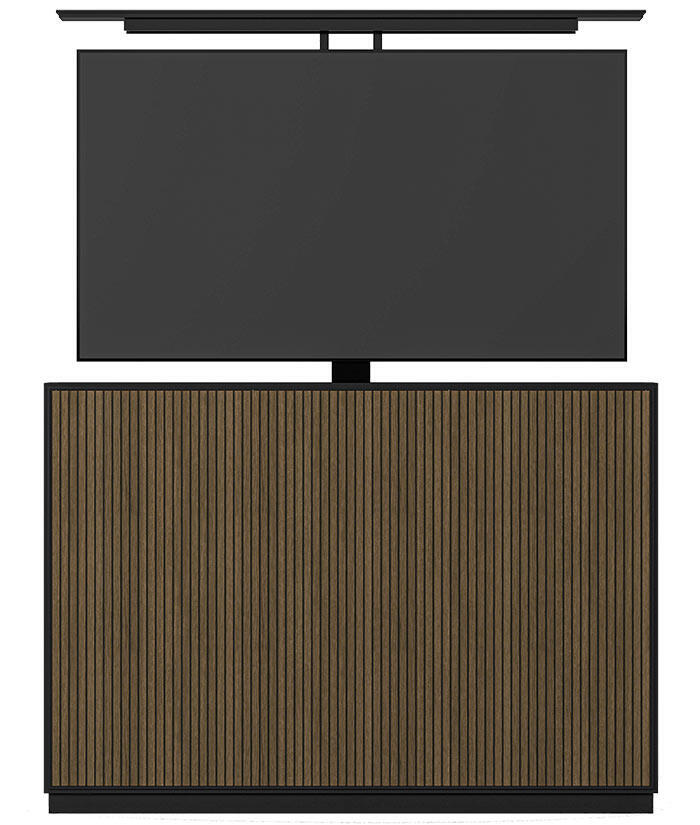 Line finns nu även i utförandet Burned Walnut - fronter i valnötsbetsad ekfanér med sidor i svart eller vit. Överdelen ackompanjeras med benställning eller sockel.