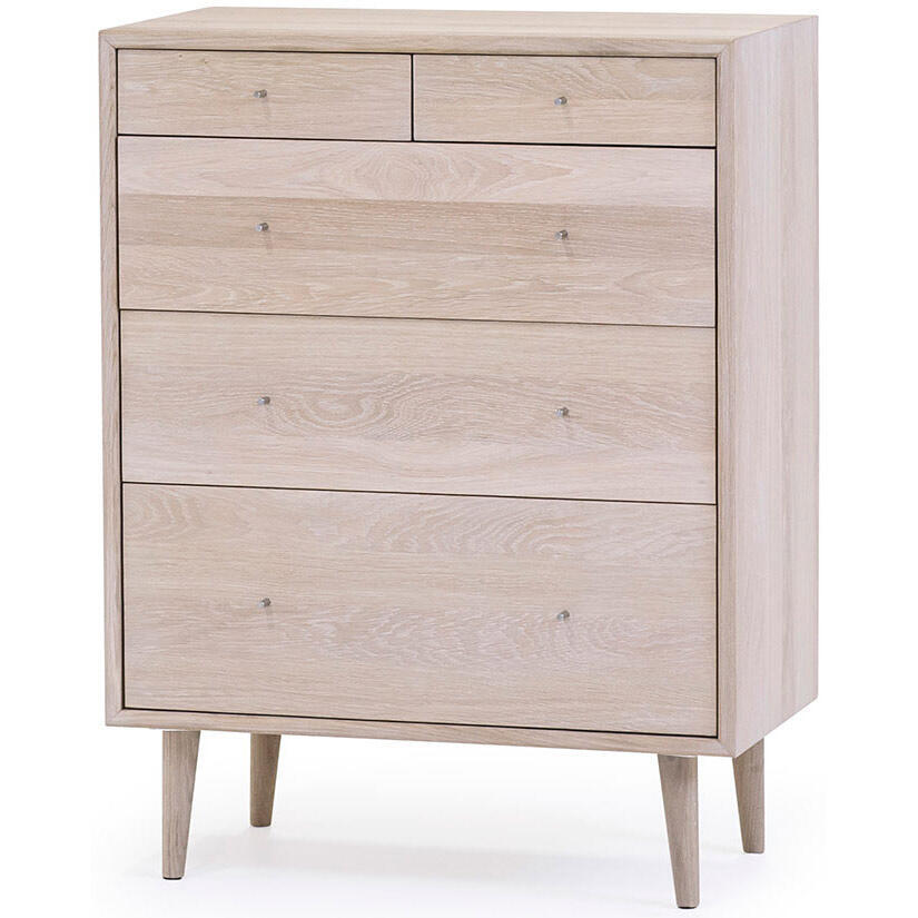 I serien Nordik hittas tre modeller av byråar, alla med fin design och praktiska lådor med mjukstängande beslag. Det här är den största storleken med totalt fem lådor, två mindre och tre större som ger praktisk förvaring till såväl hallen som sovrummet.