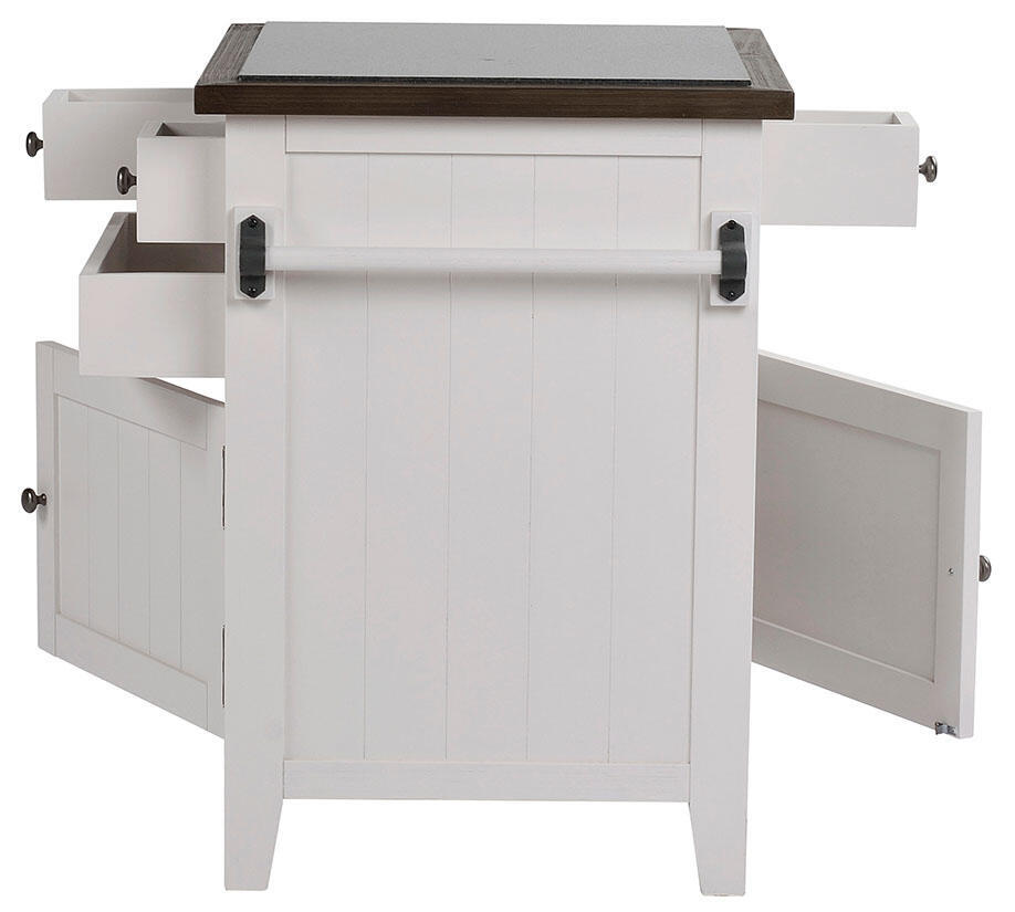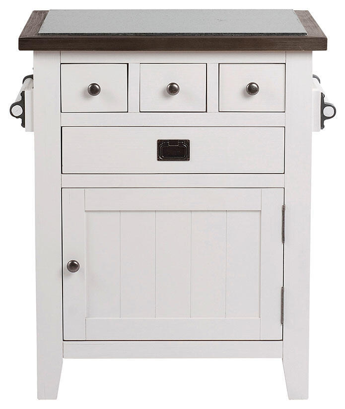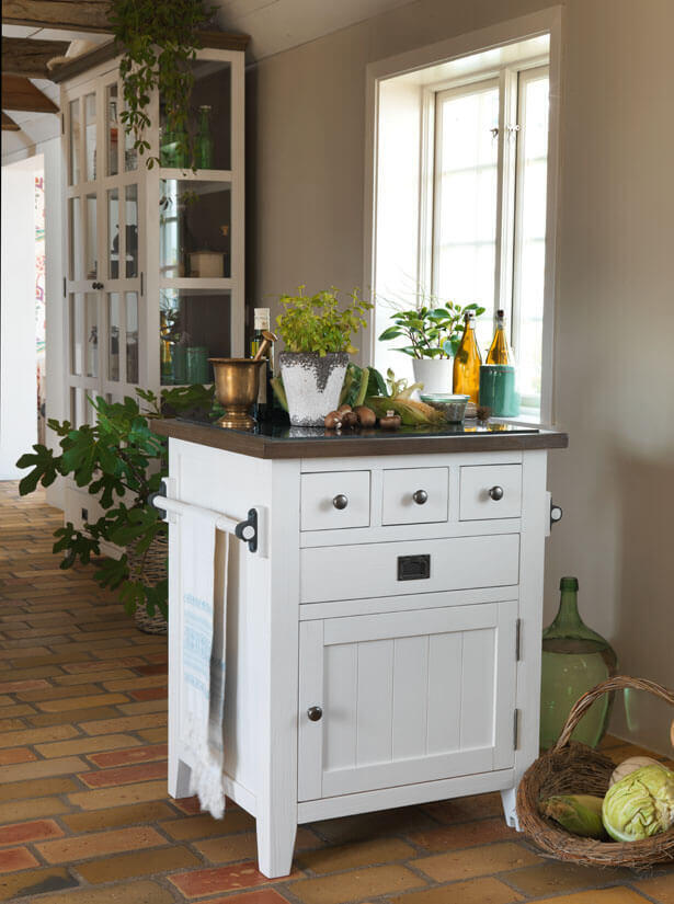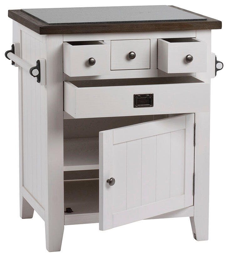 Kockbänk från serien Nottingham är ett perfekt komplement i ditt kök. Gott om utrymme ges av ett skåp och flera lådor per sida om köksmöbeln, på kortsidorna finns hängare för exempelvis kökshanddukar och köksredskap. Möbeln har en snygg toppskiva av brunbetsad massiv furu medans stommen är tillverkad av MDF. Den mörka granitskivan ger en tålig arbetsyta som är lätt att hålla ren.