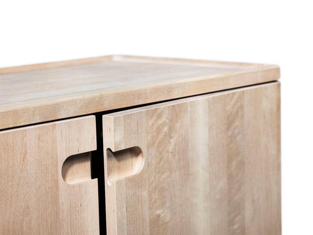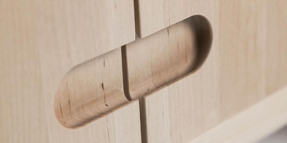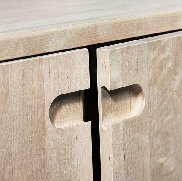 Genom att alla beståndsdelar är gjorda i trä upplevs Prio exklusiv och naturnära. Det vackra i massivt trä visas upp i detaljer såsom urskålning av toppskivan, handtagen samt den avrundade benställningen.