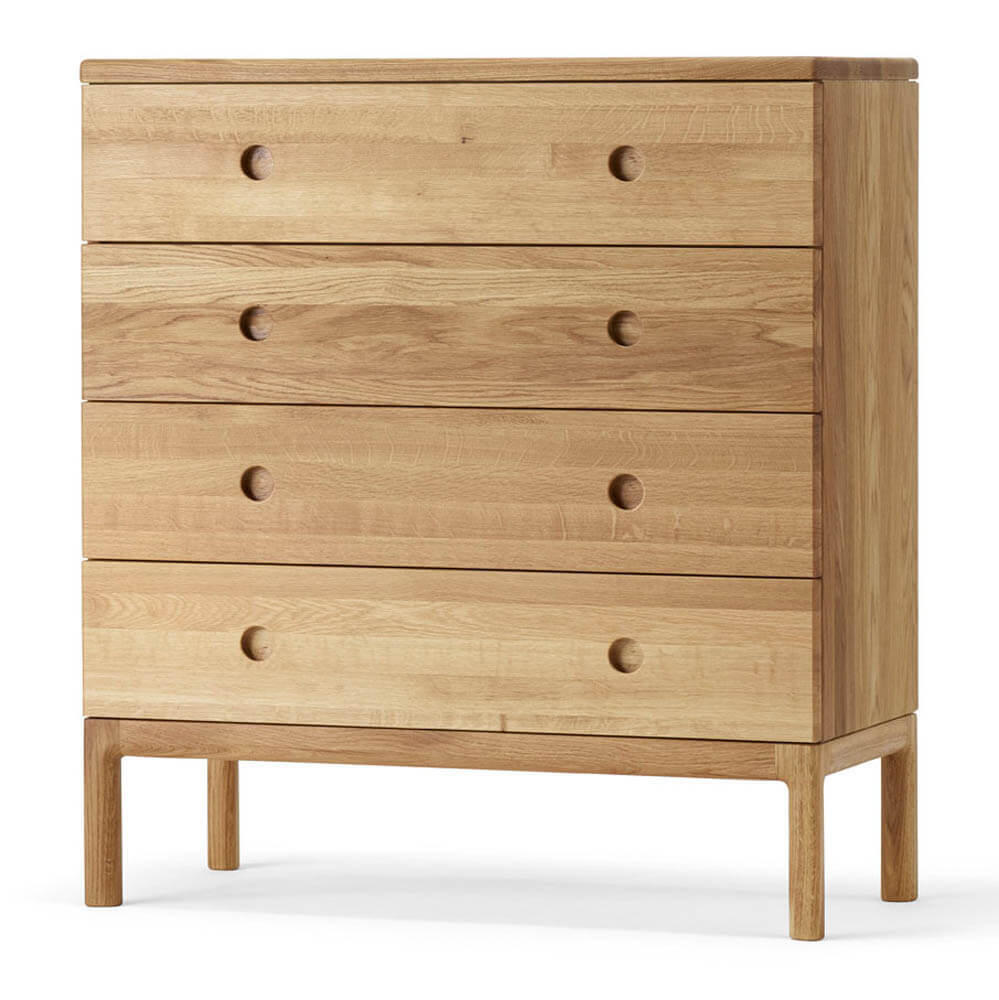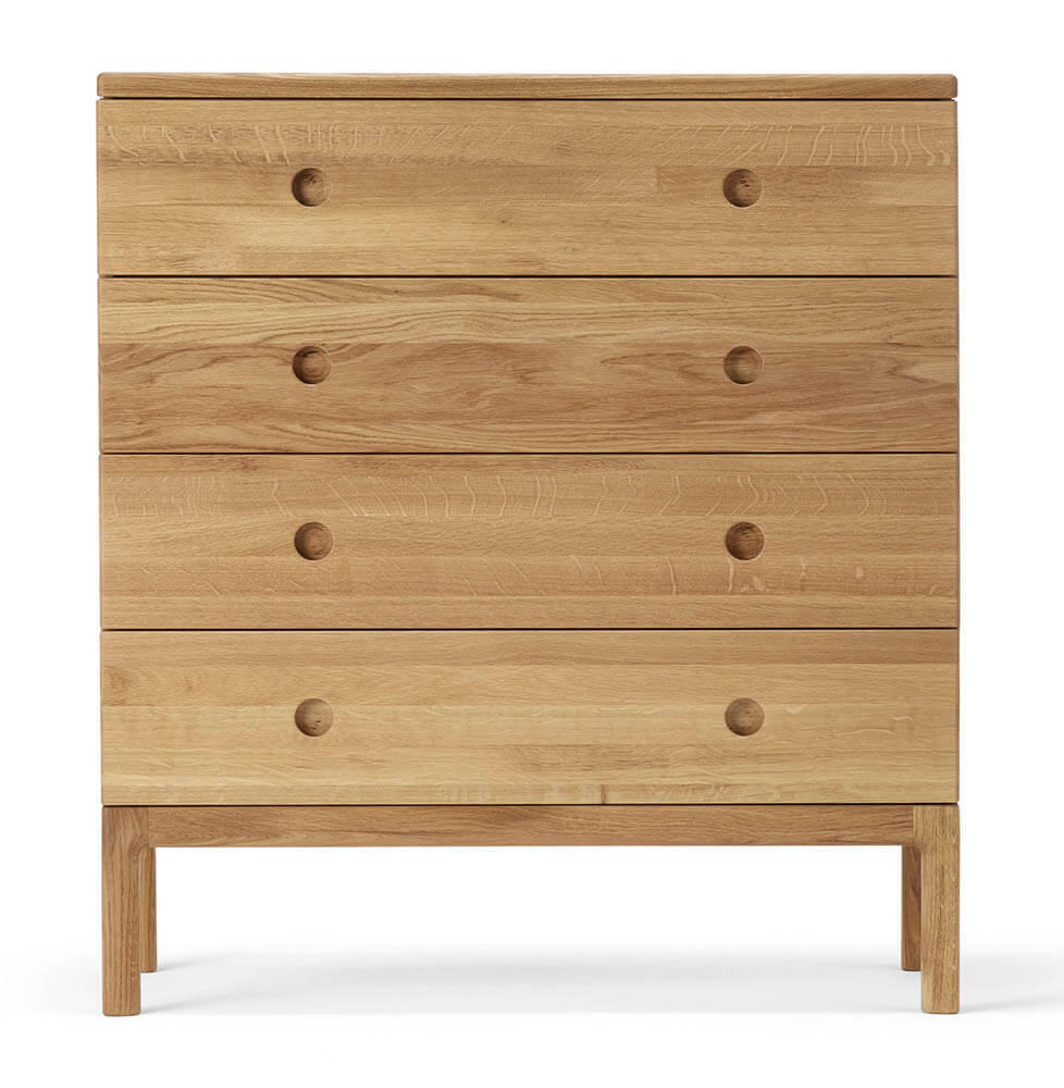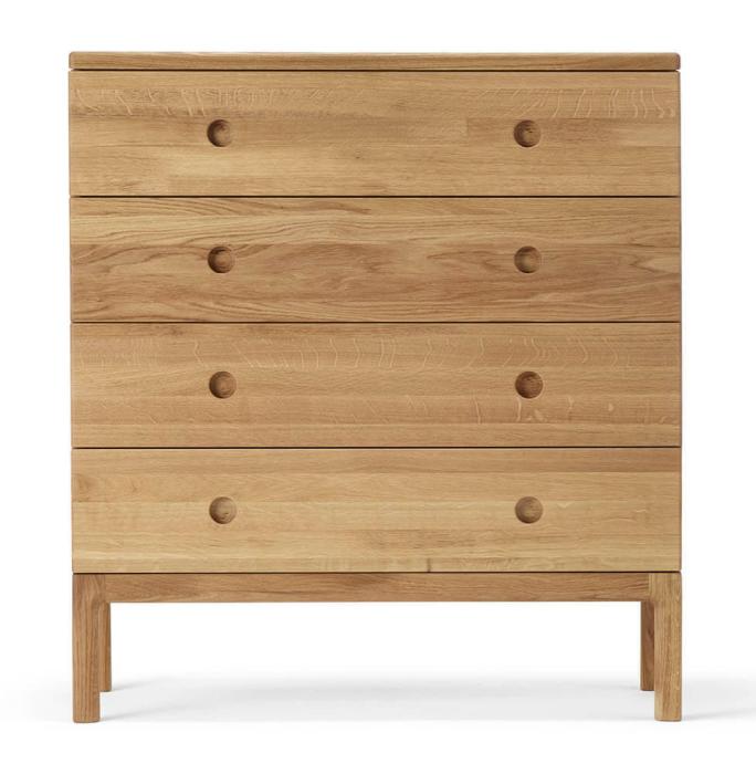 Den här modellen av förvaringsmöbeln heter "Prio hög byrå" som har fyra stycken rymliga lådor för rejäl förvaring av allt som kan tänkas för exempelvis hall eller sovrum. Byrån finns även med tre lådor, se den här.