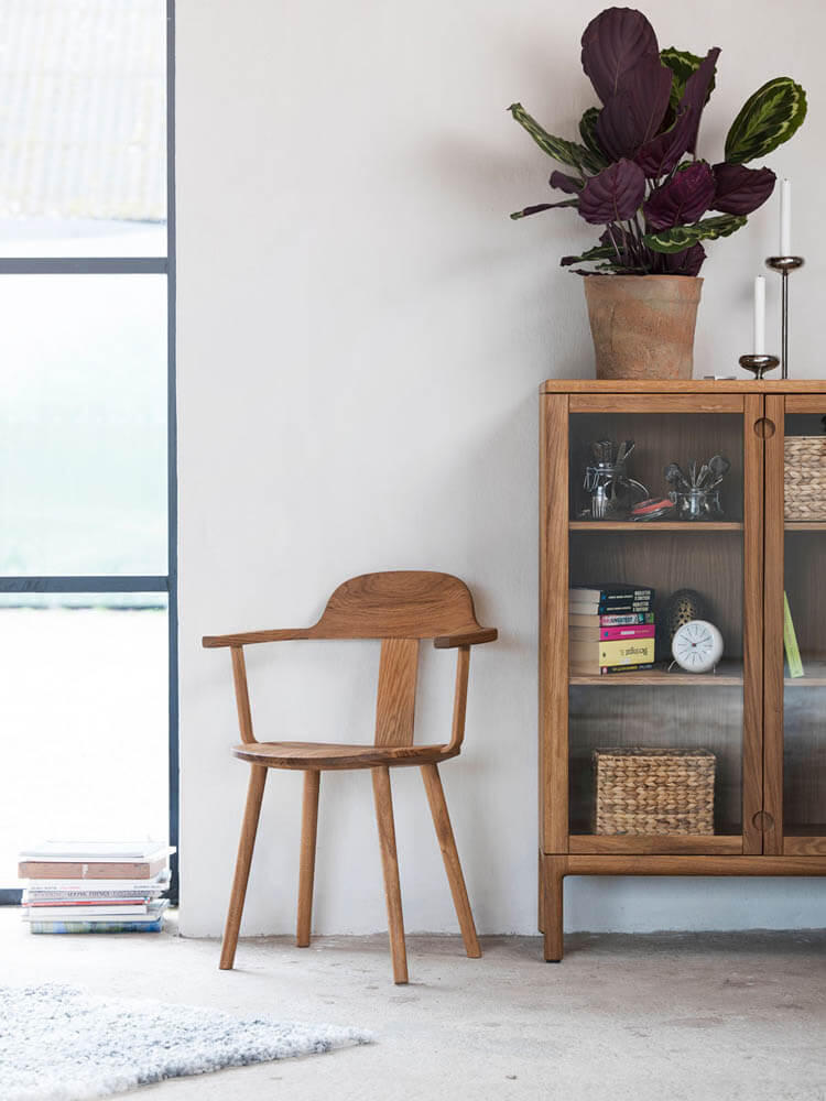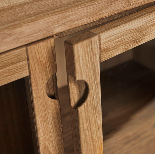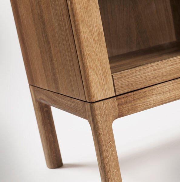 Genom att alla beståndsdelar är gjorda i trä upplevs Prio exklusiv och naturnära. Det vackra i massivt trä visas upp i detaljer såsom urskålning av toppskivan, handtagen samt den avrundade benställningen.