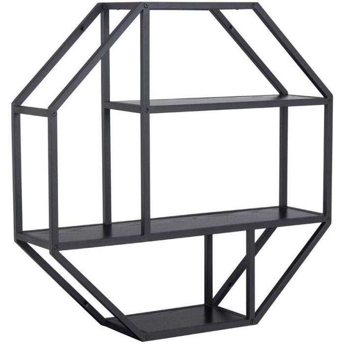 Seaford 3 Oktogon Vägg Melamin Svart / Svart Vägghylla