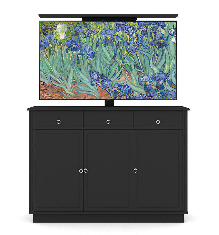Kollektionen av TV-liftar från Englesson består av fyra olika serier i två färger. Skänkarna finns i två storlekar, en för TV-apparater upp till 55 tum och en större för upp till 65 tum.