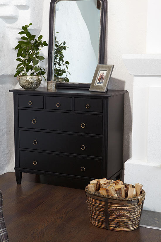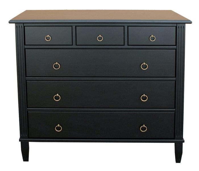 Stockholm 524 är en rymlig byrå till sovrummet eller hallen, med tre stora och tre små lådor fås en förvaringsmöbel som rymmer det allra mesta. Möbeln är handmålad i flera färger och har fått sin stil och elegans från traditionellt svenskt hantverk. Rena linjer med fin balans mellan då och nu. Serien Stockholm från Englesson innehåller ett brett utbud av kvalitetsmöbler.