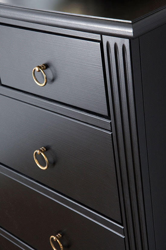 Black (B) - Produkten är handmålad i svart halvmatt lackfärg. Extra skyddslack på toppskivor.