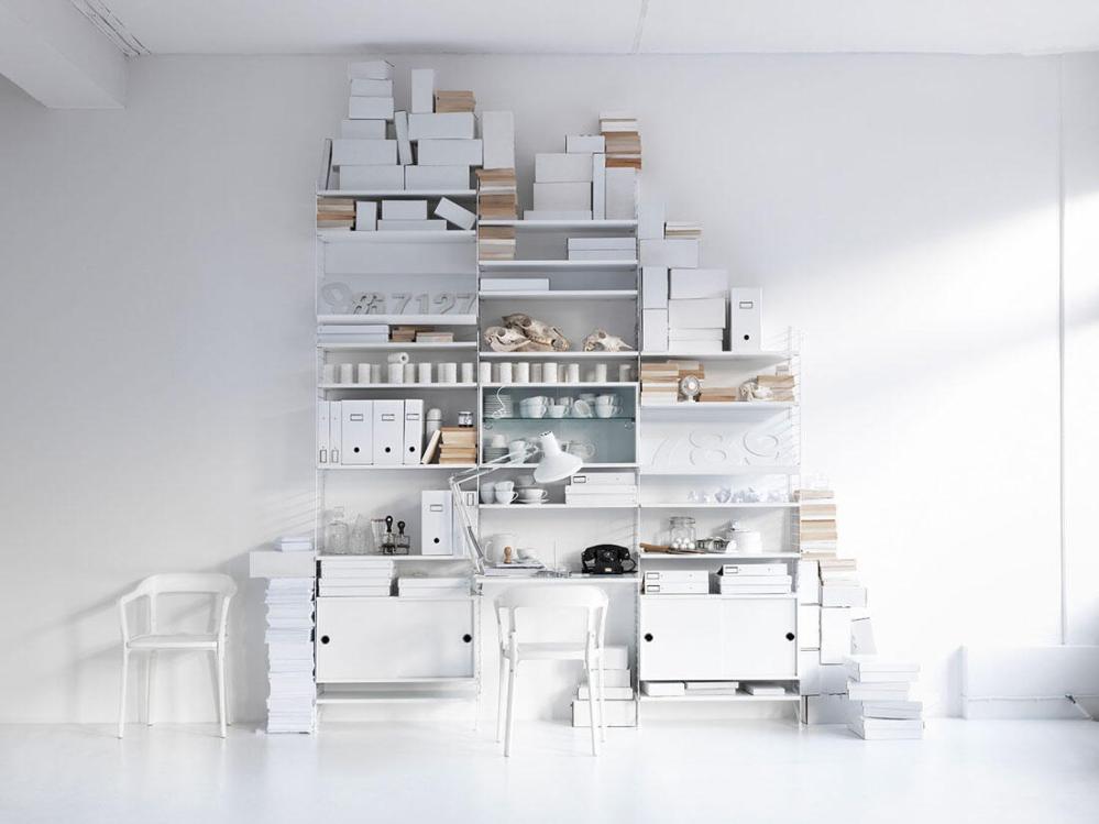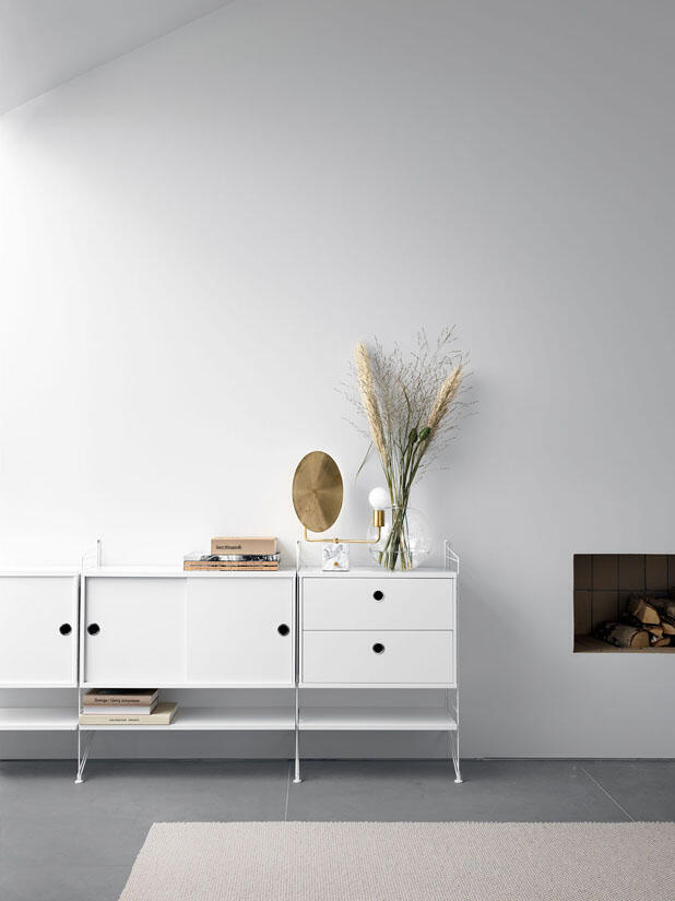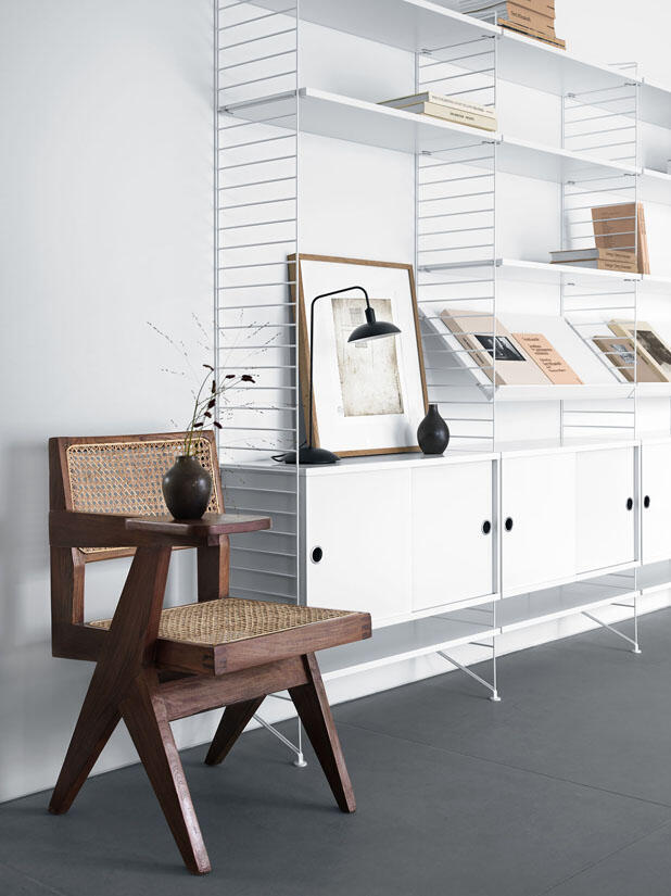 Trådarna i golvgavlarna ger String® dess typiska karaktär. Om du behöver mer plats är det bara att lägga till gavlar och hyllplan. String® golvgavlar finns i tre höjder, 85, 115 och 200 cm, och ett djup, 30 cm
