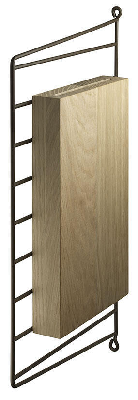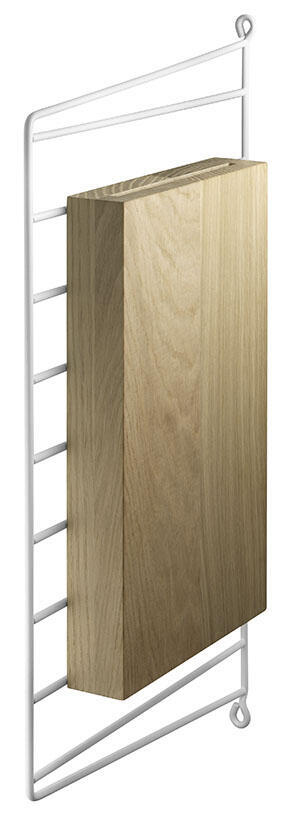 Knivblocket tillverkad av massiv ek som enkelt fästs på en Stringgavel är en av Strings senaste tillskott till deras breda sortiment. Med plats för upp till tre knivar får du ett praktiskt och snyggt komplement till kökshyllan.