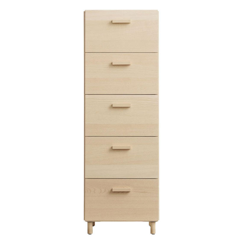 Hög byrå från Relief med fem lådor. Alla byråer från Relief går enkelt och smidigt att koppla ihop. Med fem färger och tre storlekar kan du designa flera unika Reliefkombinationer. Baksidan av byrån är lika tilltalande som framsidan vilket ger dig flexibilitet i placeringen av Relief. Byråns mått är b41 x d41 x h115 cm. Lådans innermått är b33 x d363 x h17 cm. Produkten levereras omonterad.