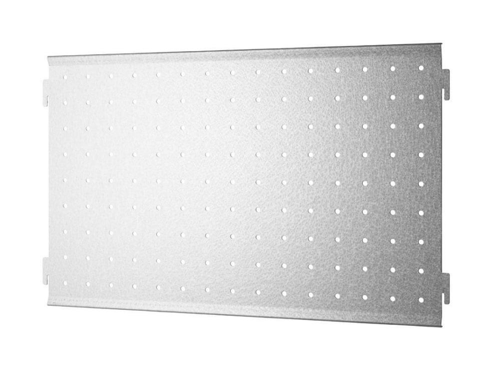 Ryggskiva är en del av den fristående utomhushyllan från String och är tillverkad av aluzink stål. Ryggskivans bredd är 57 cm och höjd 36 cm. För en komplett sektion av den fristående hyllan krävs en ryggskiva och två stolpar samt två galvaniserade golvgavlar med höjd 85 cm och djup 30 cm. För att bygga ytterligare sektioner behöver du en extra stolpe samt en extra gavel per sektion. För en kombination bestående av tre sektioner rekommenderas minst en ryggskiva och placeras med fördel i mitten.