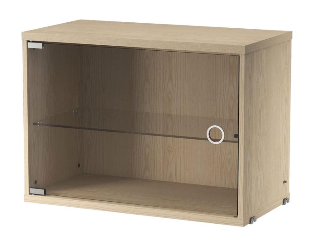 Skåp med glasdörr finns i en bredd, 58 cm, samt ett djup, 30 cm. Skåpet passar med tråd- och plexgavlar från String® System förutsatt att gavlarna är 30 cm djupa. Det är fint att bryta av din hylla med skåp som dessutom ger dig extra förvaring samt möjlighet att placera saker ovanpå. Skåpet består av ett innerhyllplan i glas. Dörren är anpassningsbar och går att montera både på vänster och höger sida.