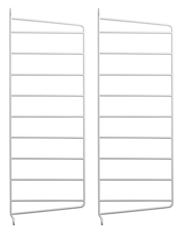 Trådarna i väggavlarna ger String® dess typiska karaktär. Om du behöver mer plats är det bara att lägga till gavlar och hyllplan. String® väggavlar finns i två höjder, 50 och 75 cm, och två djup, 20 och 30 cm.