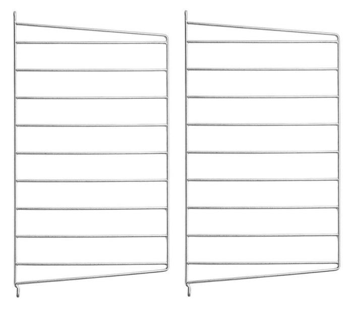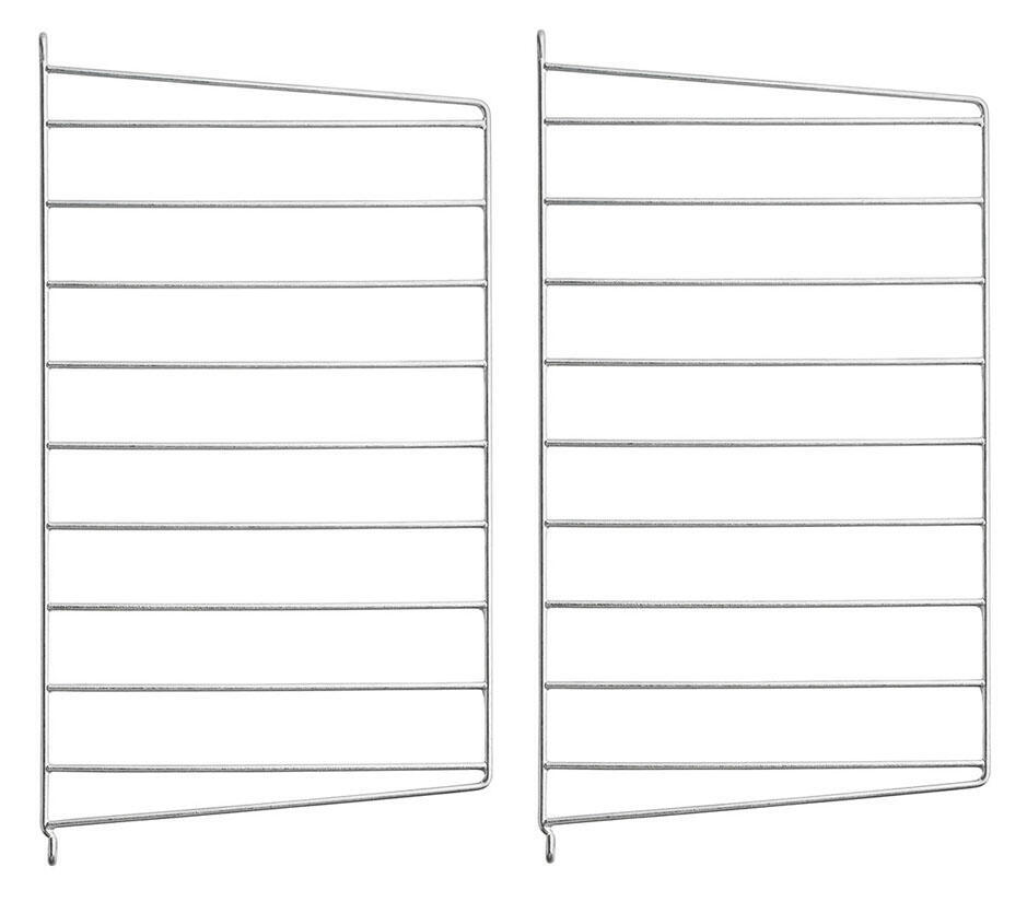 Väggavel 50x30 cm, 2-pack - Nu går det tidlösa hyllsystemet även att använda för elegant och funktionell förvaring utomhus, i och med att String lanserar en galvaniserad version av hyllsystemet. Hyllplanen är tillverkade i materialet aluzink, som är en stålplåt belagd med aluminium-zink som står emot väta och rost. Gavlarna är tillverkade av stål som ytbehandlats genom varmförzinkning. Kombinera ihop din egen String kombination för utomhusbruk!