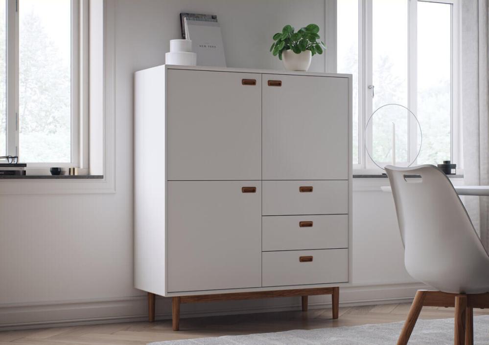 Svea-skåpen är gjorda för förvaring och är den perfekta förvaringslösningen i både mat- och vardagsrum. Hyllplanen inuti är flyttbara för att ge dig möjlighet att anpassa din förvaring precis så som du vill ha den.