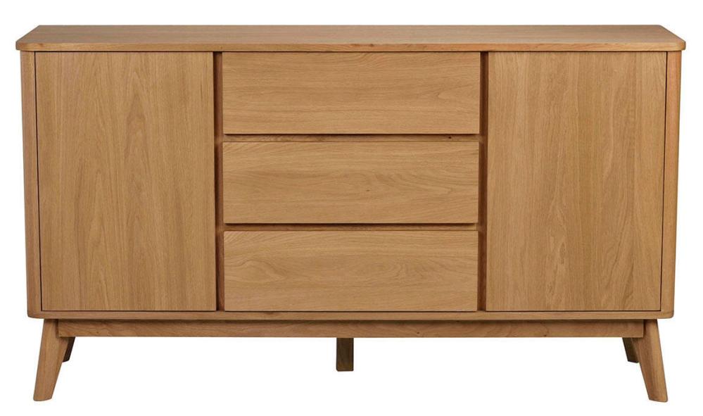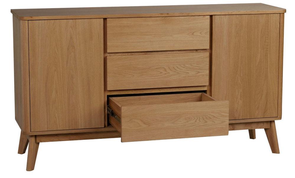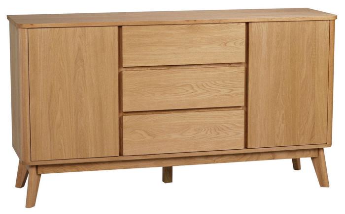 Ben samt rundade detaljer i massiv ek, övrigt i ekfanér. Lackad yta.