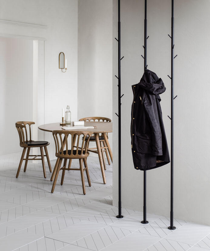Birch är klädstången som passar in såväl i det privata som det offentliga rummet. Funktionen och användningsområdet begränsas endast av din egen fantasi. Den fungerar lika bra i hallen, badrummet och sovrummet som den gör på kontoret, mottagningen, restaurangen, butiken, verkstaden eller ateljén. Birch går att justera i höjd vilket ger den möjlighet att placeras mellan 2,10 till 3,50 meters takhöjd. Vacker som soloprodukt eller som multipel bildar den en känsla av en vacker björkdunge. Bower Studio ligger bakom möbeln och är en mångfacetterad designstudio, som integrerar arkitektur och bildkonst i olika sammanhang. Studion leds av Carl Magnus Elander och Oscar Gillkvist från Göteborg.