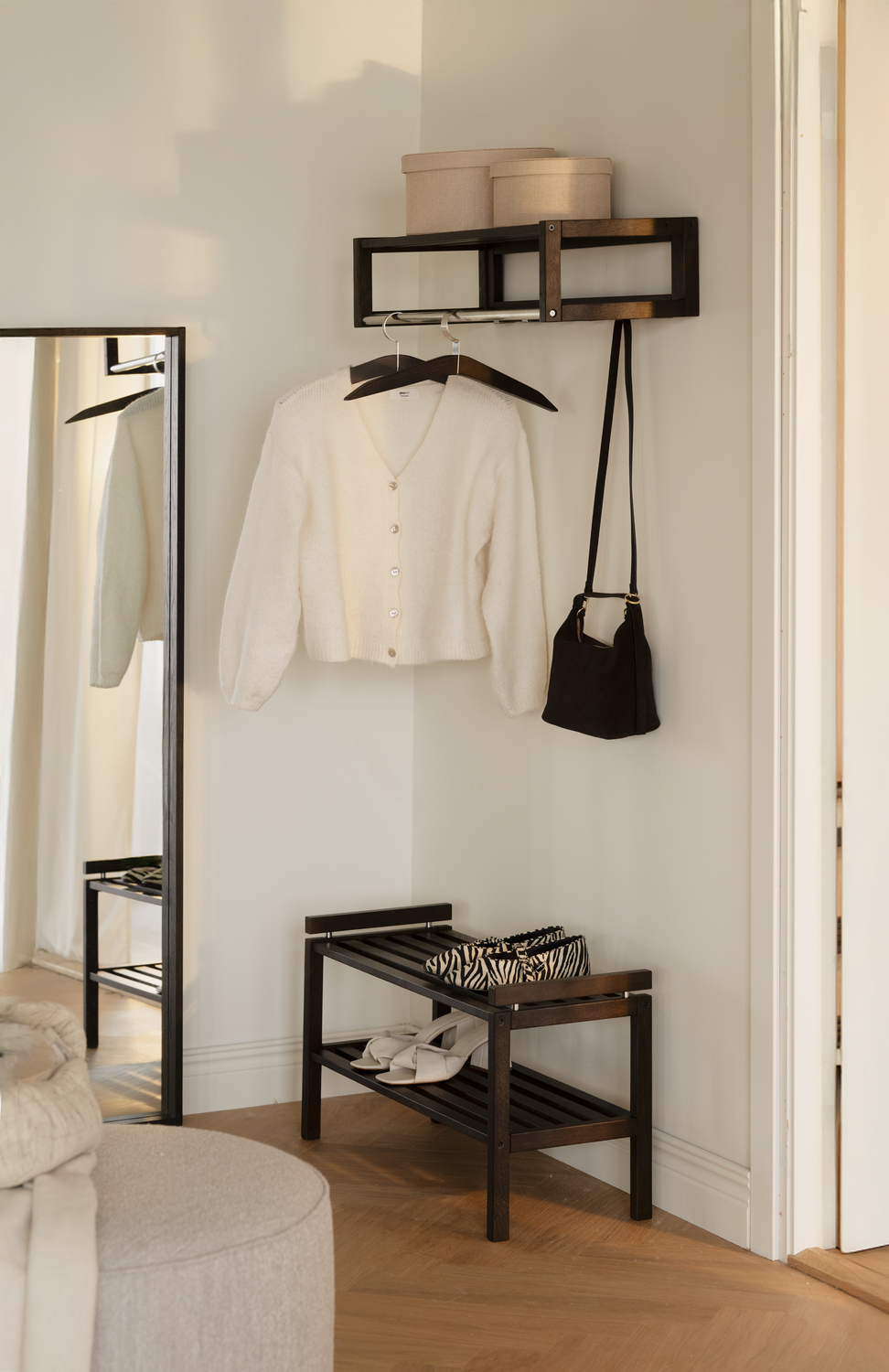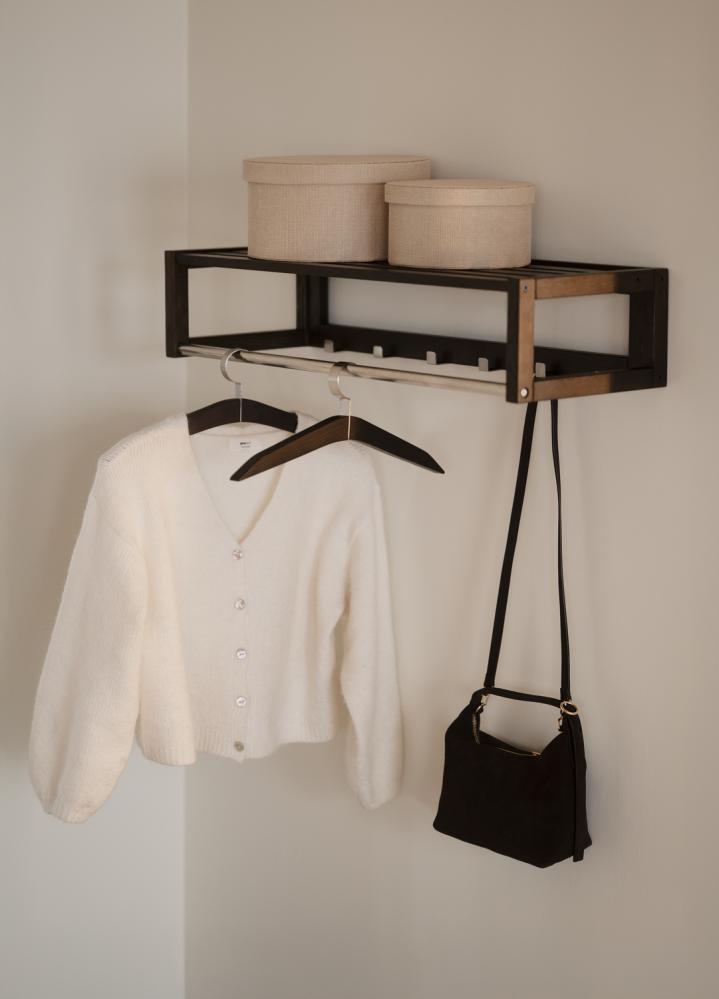 Confetti hatthylla i massiv ek. Hatthyllan är både praktisk och modern med snygga krokar i metall. Hatthyllan ingår i hallserien Confetti från svenska varumärket Rowico Home.