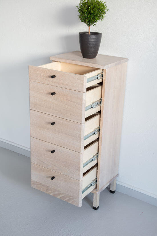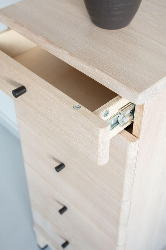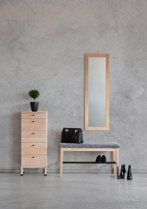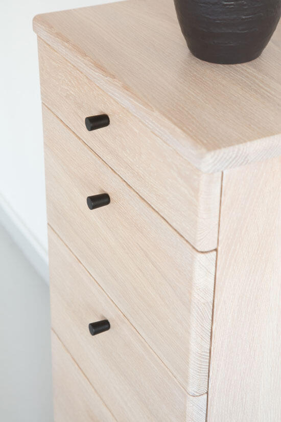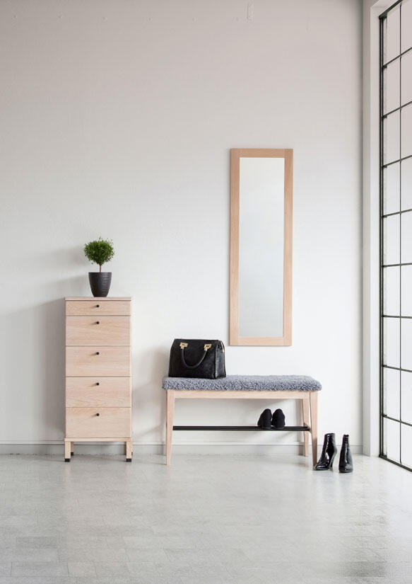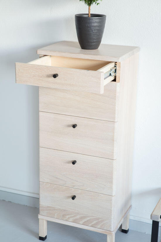 Byrån passar såväl hallen, sovrummet eller den plats där lite extra förvaring behövs. Byrån finns med 4 eller 5 lådor, i flera härliga träslag och färger.