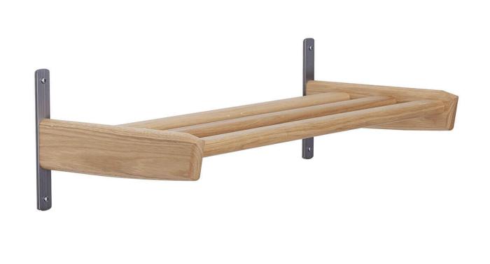 Skohylla Meja, väggmodell med 1 hyllplan och detaljer i slipat stål. Skohyllan är tillverkad i massiv ek eller vitlackad massiv björk. Nu har Oscarssons Möbel designat en hallmöbel med en korsning av klassisk och nyskapande form. Deras styrka ligger i valen av material, sinne för detaljer och passion för design.
