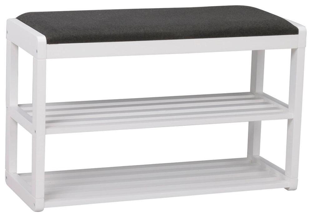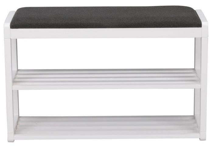 Methro är en stilren och praktisk skoställ och sittbänk i ett. Skohyllan har två nivåer med en skön mörkgrå sittdyna av tålig 100% polyester. Möbeln är tillverkad av vitlackad massiv björk och MDF. Hallmöbeln ingår i serien Methro som designats av Rowico.