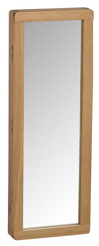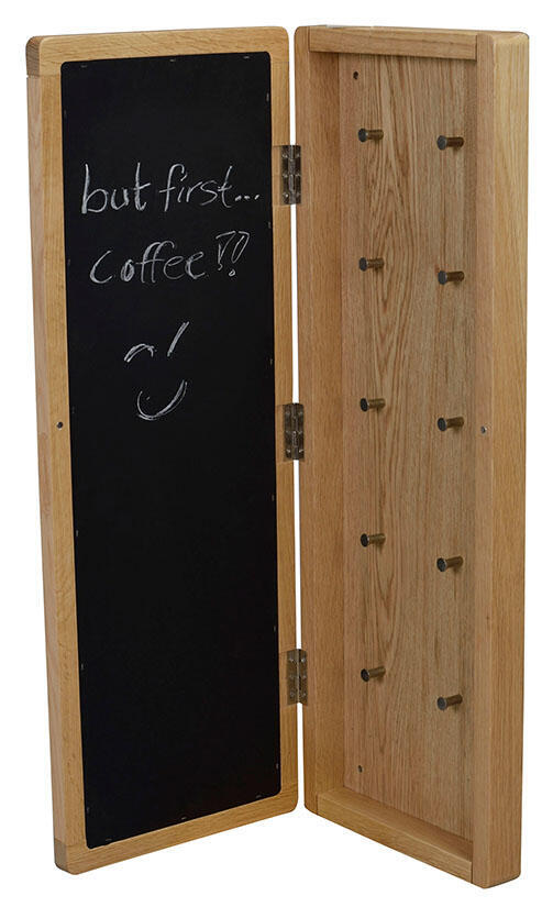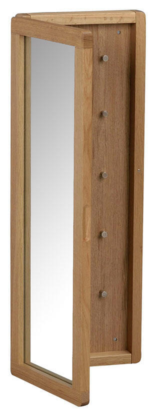 Methro här som stilrent nyckelskåp i massiv ek och lackad faner. Framtill en dekorativ spegel och inne i skåpet 10 st krokar i kromad metall. Nyckelskåpet ingår i Rowicos serie Methro.