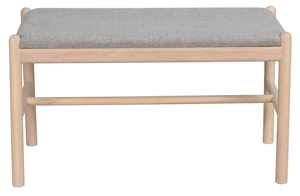 Milford sittbänk i lackad massiv vitpigmenterad ek med sits i grått tåligt polyestertyg. En stilsäker bänk som passar lika bra i hallen som sovrummet. Milford hallserie finns i flera färgställningar och är designad av Rowico.