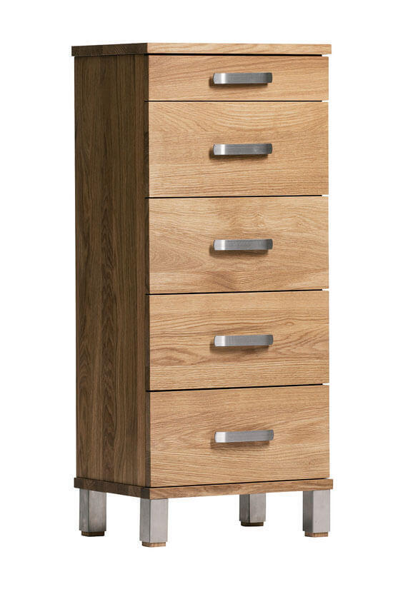 Nadja byrå finns i höjd 75 cm/4 lådor eller 93 cm/5 lådor. Bredd är 40 cm eller 70 cm och djup på endast 31 cm. Byrån är tillverkad i massiv ek eller vitlackad MDF. Byrån finns i sju olika färger med metallben eller träben. Handtagen är tillverkade i slipat stål. Byrån levereras monterad. Handtag är ej monterade.