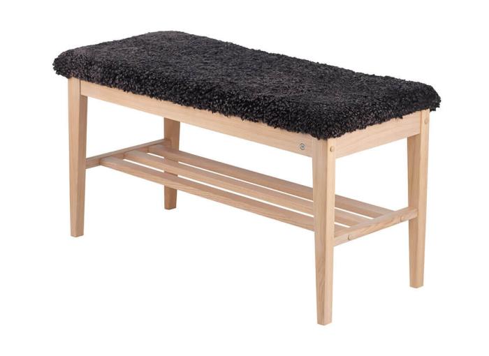 Nadja Fårskinn Mörkgrå Vitoljad Ek Bänk
