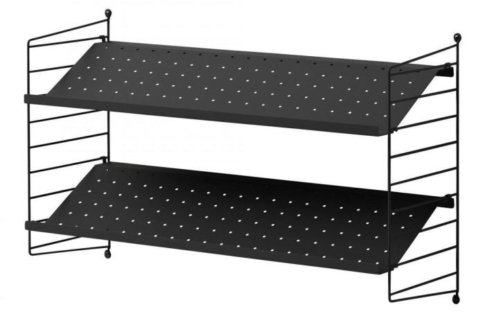 Det här paketet innehåller två väggavlar 50x30 cm och två skohyllor i metall 78x30 cm.