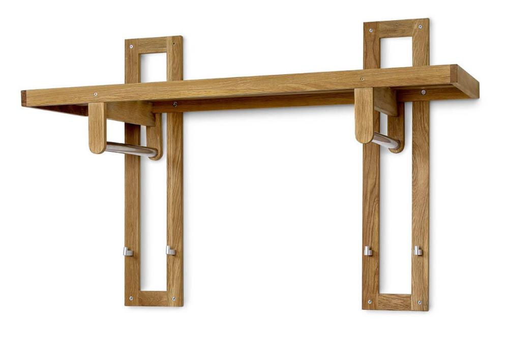 Zitti klädhylla (dubbel) har stålstänger med en praktiskt placering för galgar såväl som de extra aluminiumkrokarna ger plats för hängande kläder tillsammans med hyllplanet får du en hylla som rymmer mycket. Hyllan finns i två storlekar i massiv oljad ek eller vitlackad MDF.