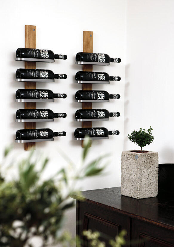 Vinstället Mazzi för dina favoritviner tillverkas av massiv ek eller vitlackad björk med ståldetaljer i mattsvart struktur eller slipat stål. Vinställ är inte bara en praktisk förvaring utan även en tilltalande möbel. Mazzi Vinställ finns för 5 eller 10 flaskor.
