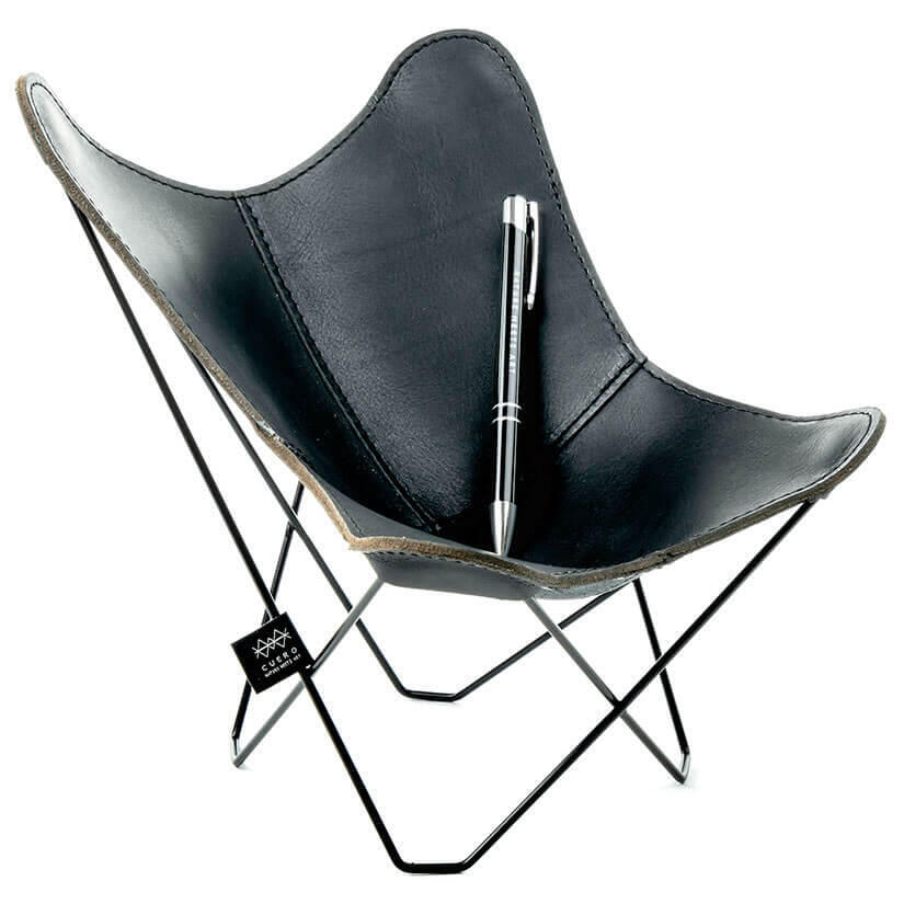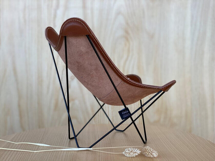 Upplev Cuero Designs Pampa Mariposa i miniatyr utförande. Stativet är av svartlackerat stål medan lädret finns i sex färger. Miniatyren är perfekt som present till den designintresserade eller som prydnad i din egen bokhyllan eller på sidobordet.