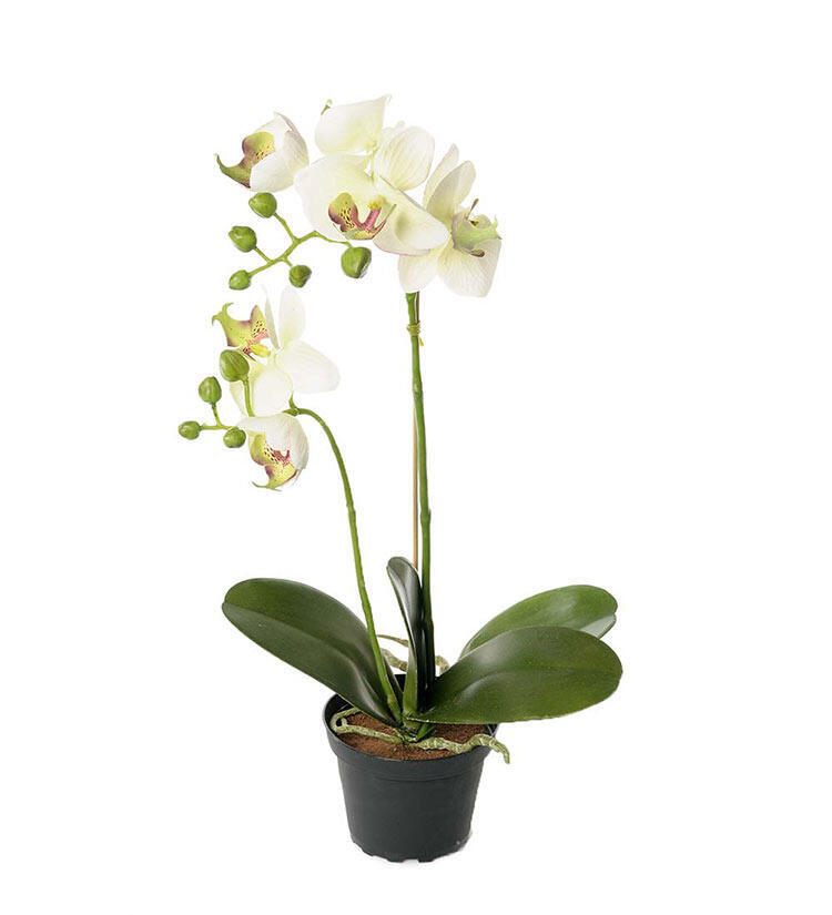 Phalaenopsis (brudorkide) i kruka är den perfekta inredningsdetaljen som alltid står i blom. Den 45 cm höga konstväxten är gjord av högsta kvalité för att skapa en naturtrogen känsla i ditt hem. Ståtlig konstväxt som skapar en botanisk känsla.