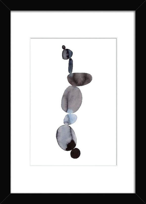 Tavla Stacked Rocks med fint mönster, storlek 21X30 cm, ram svart