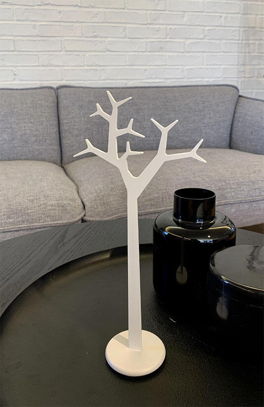 Populära rockhängaren Tree från Swedese nu som en oemotståndlig accessoar. Mini Tree är en lite mindre variant av den störra förlagan, den perfekta student- eller bröllopspresenten alternativt som gåva vid konfirmation eller middagsbesöket. Använd det ståtliga trädet för att hänga dina smycken på eller låt den stå som den vackra skulptur den är i bokhyllan eller på soffbordet.
