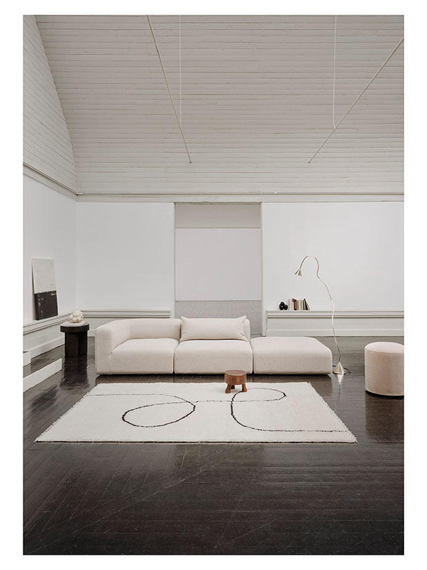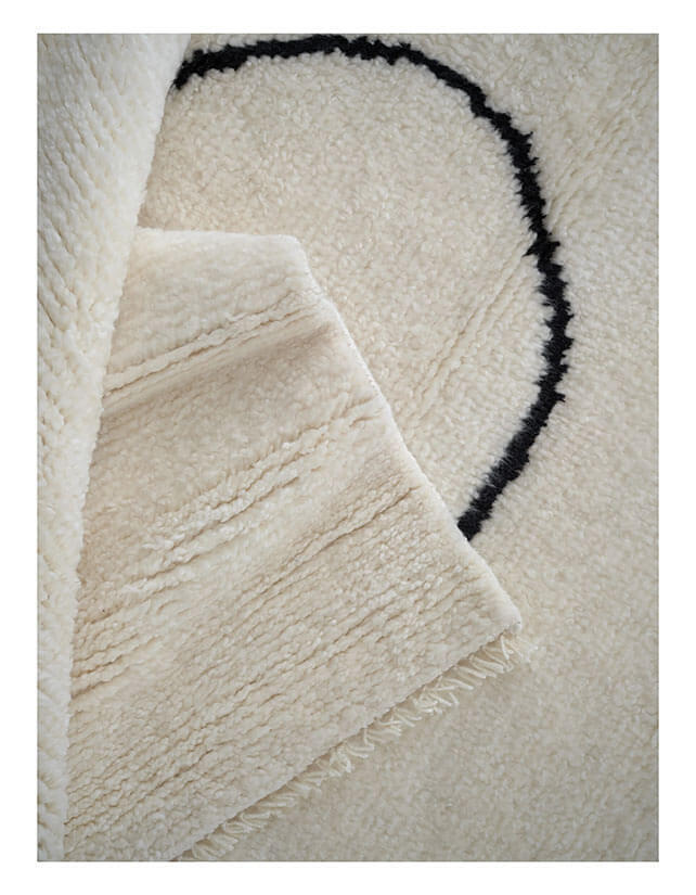 Matta Astral Spiral använder en tunn slinglinje för att skapa en känsla av oändligt flöde och balans, de organiska kurvorna ger en känsla av rytm och harmoni. Mattorna är handgjorda i ren ull med en tjock, överdådig lugg som erbjuder skön värme och mjukhet under fötterna, samtidigt som den förstärker det naturliga uttrycket.