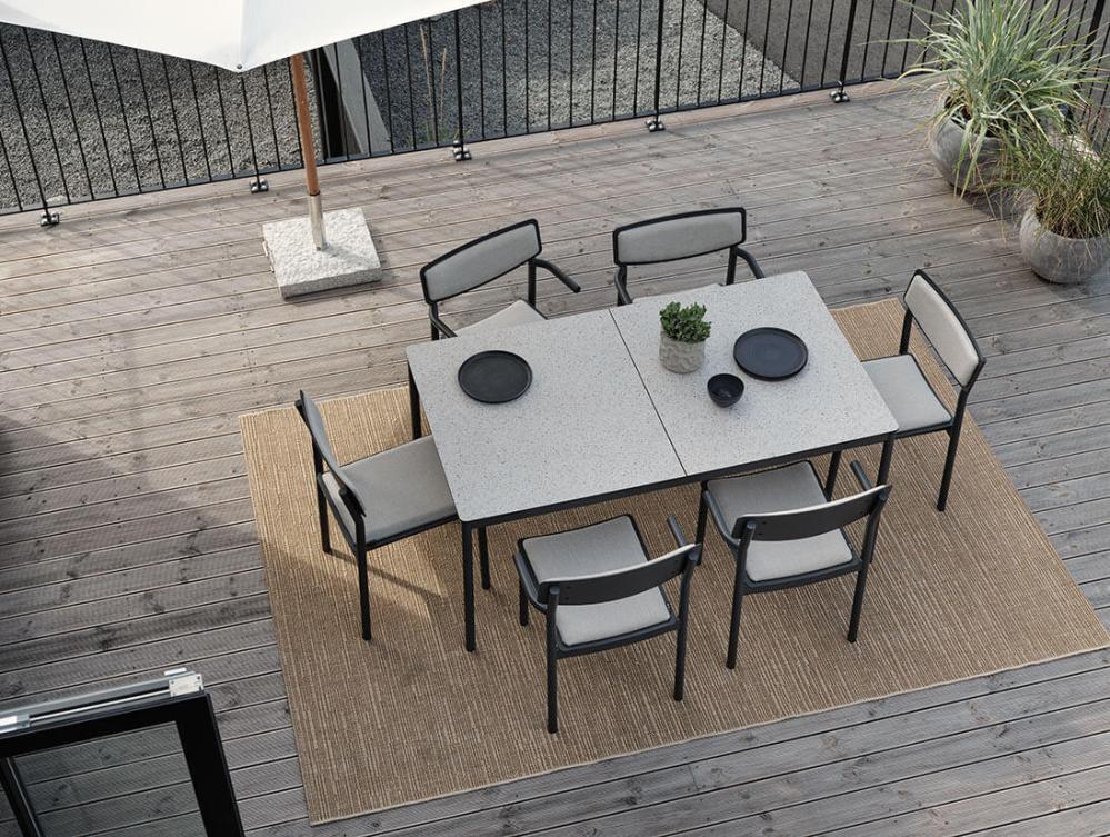 Averio är en tålig och slitstark utomhusmatta som är tillverkad i syntetmaterialet polypropylene. Väven, som påminner om naturmaterialet sisal till utseendet, är extra kraftig och tekniken för tankarna till repslagning. Mattan tål vatten och är dessutom UV-beständig vilket innebär att du utan problem kan placera den såväl utomhus som inomhus. Averio finns i flera storlekar, former och färger; beige och grå. Den här modellen är rektangulär i beige, du hittar den gråa en bit ner på sidan under Liknande produkter, här hittas även den runda modellen.