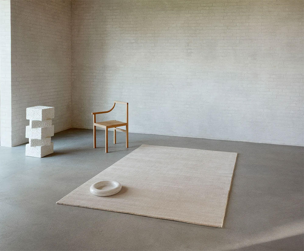 Halo Cloud är en vävstolsknuten ullmatta från danska varumärket Linie Design. Den handgjorda mattan med subtilt markerad kant och kort lugg är designad av Urd Moll Gundermann. Mattan finns i flera rektangulära storlekar, rund 250 cm och i flera färger är tillverkad av ull med en varp av GOTS-certifierad bomull. Den här modellen är i färgen Beige. Halo Cloud ger en skönt varm och ombonad känsla till hemmet.