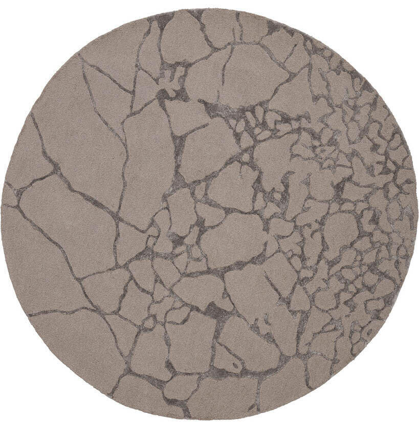 Marmo är en rund matta i två storlekar och flera färger. Mattan är handtuftad av finaste ull- och viskosblandningen, som getts ett stenliknande mönster likt en marmorplatta i två matchande och dova färger.