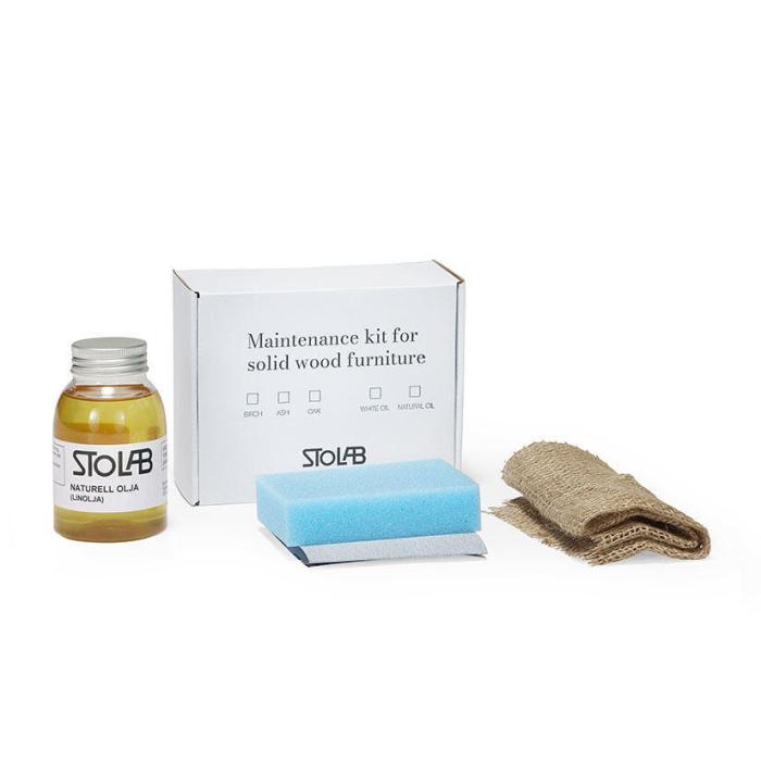 En skötselsats medföljer alla bord och förvaringsmöbler från Stolab i oljat utförande.