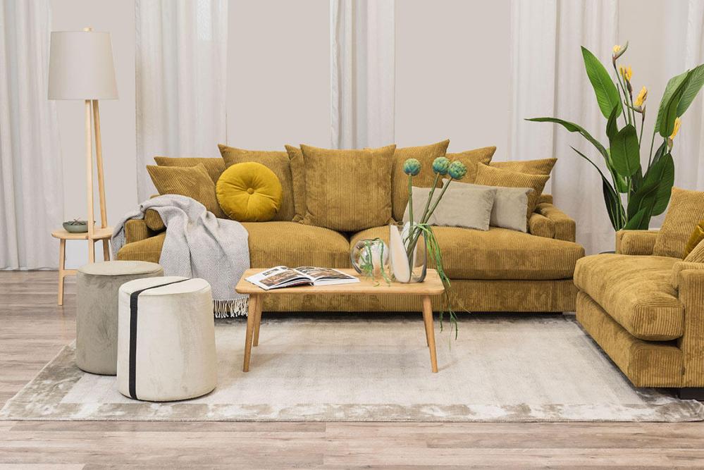 3,5-sitssoffan har 7st stora kuddar, 2st prydnadskuddar och 2st rullkuddar. Avtagbara och tvättbara kuddfodral enligt tvättråd (gäller ej läder). Fast klädsel på stomme.