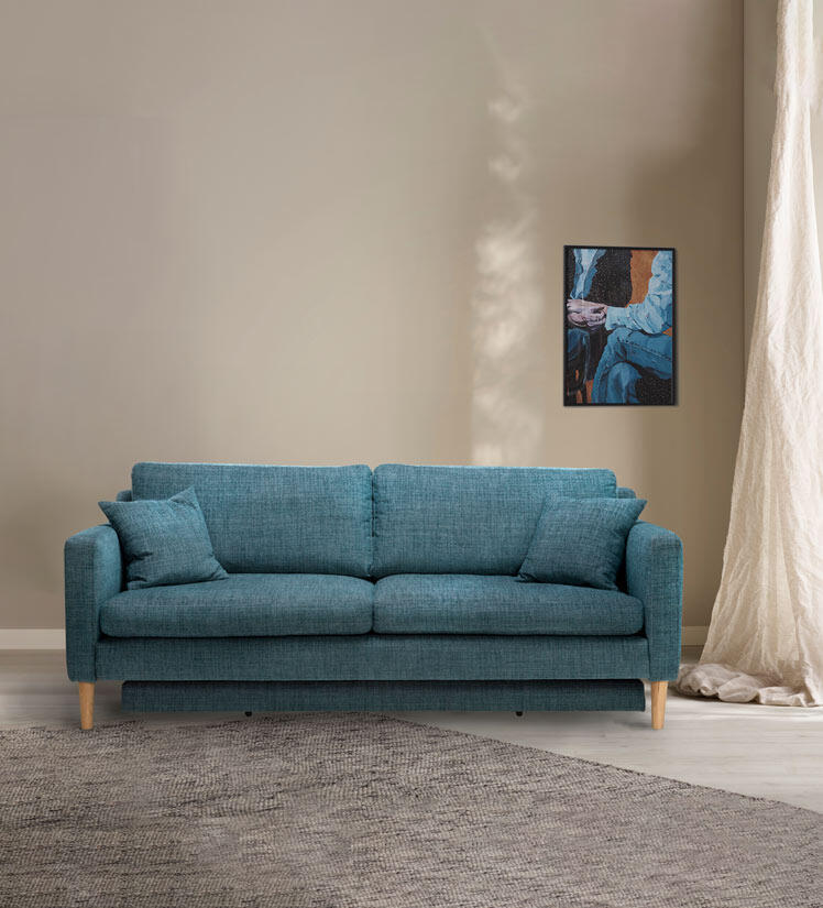 Anna med både sitt- och ryggdynor med duntopp har denna 3-sits bäddsoffa en fantastisk komfort. Och vem hade kunnat ana att det dessutom gömmer sig en lika skön bädd med pocket under dynorna? Pris inkl. två decokuddar samt madrasskydd. I priset ingår även en underbädd vilket ger plats för en till gäst.
