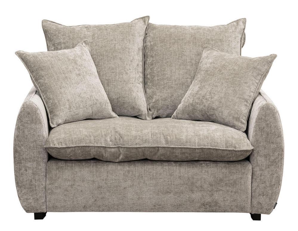 1,5-sitssoffan har 1st ryggkudde, 2st större prydnadskuddar och 2st mindre prydnadskuddar.
