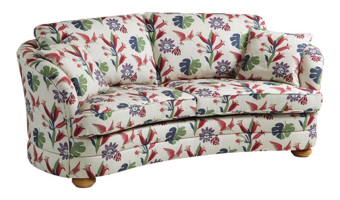 Claire levereras alltid med två sittplymåer men kan väljas med antingen två eller tre ryggplymåer. Soffan står stabilt på massiva bok- eller ekben. Två prydnadskuddar ingår. Välj på flera tyg- och läderklädslar. Vändbara sitt- och ryggplymåer.