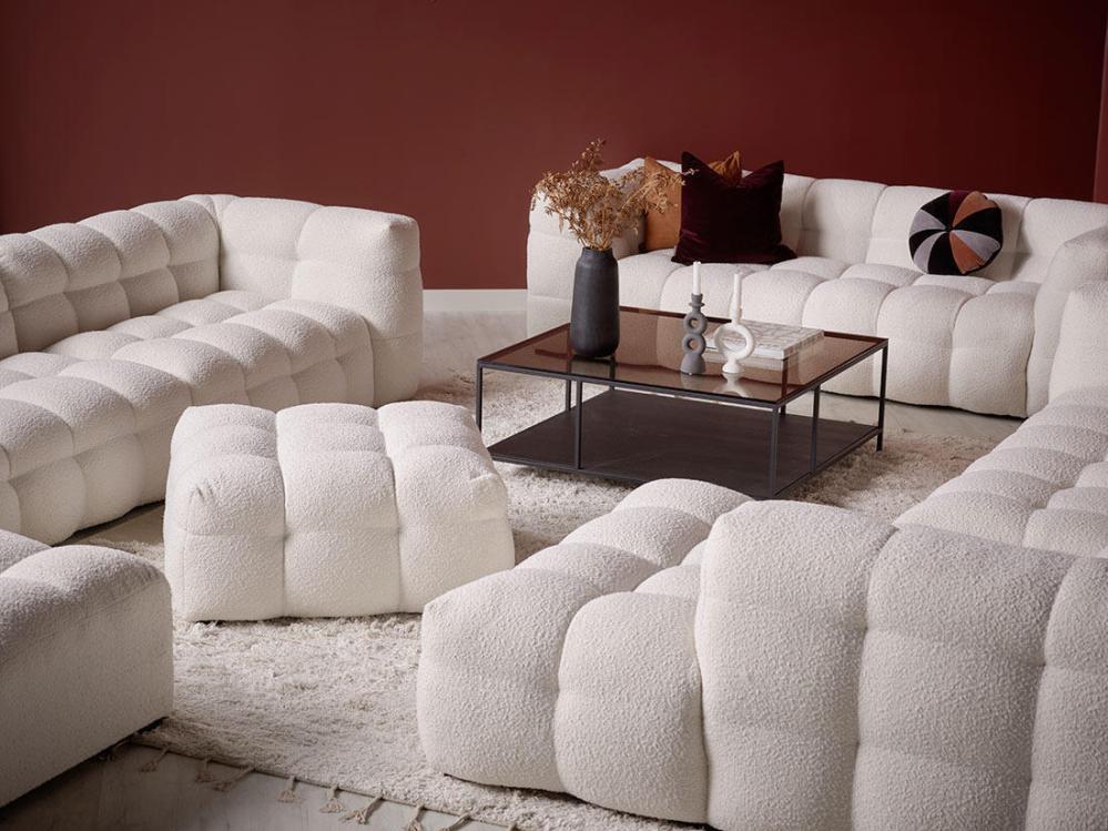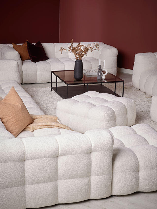 Cream är en modulsoffa som finns i flera byggbara delar, välj på en färdigkomponerad kombination eller bygg ihop din egen drömsoffa med de olika modulerna. Alla moduler är klädda runt om vilket gör att de kombineras fritt med varandra och även användas som solitära möbler. Till exempel kan en pall förlänga soffan, bilda divan eller användas som separat sittplats när många gäster kommer på besök medan sittmodulerna utan armstöd kan förlänga soffan eller användas som nätta fåtöljer. Med soffan Cream är valmöjligheterna många, det är endast fantasin som sätter gränser.