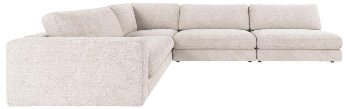 I hörnsoffan med öppet avslut ingår en 1,5-sits med vänster armstöd, ett hörn och två mittdelar som kan placeras på valfri sida om hörndelen för att bilda en 2-hörn-3 respektive 3-hörn-2 hörnsoffa.