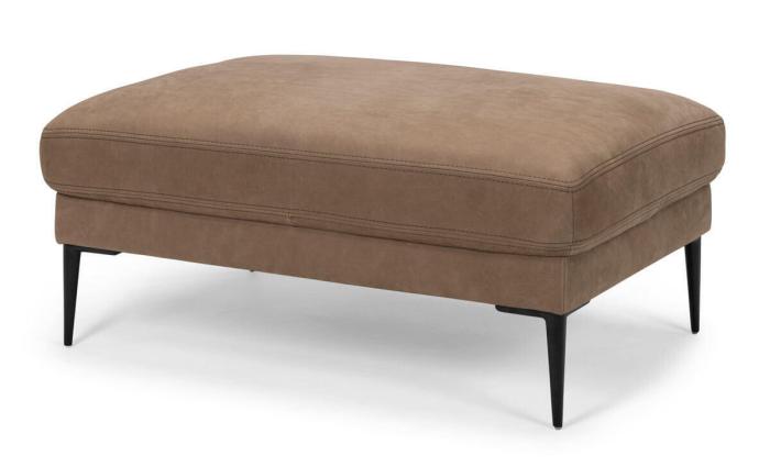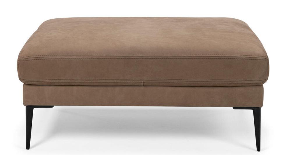 Produktbilderna visar pallen Eden i ett beige läder vid namn Superia 2132 med svarta metallben. Superia är ett silikonbehandlat vattenavstötande nubuckläder med egenskaper som anilinläder.